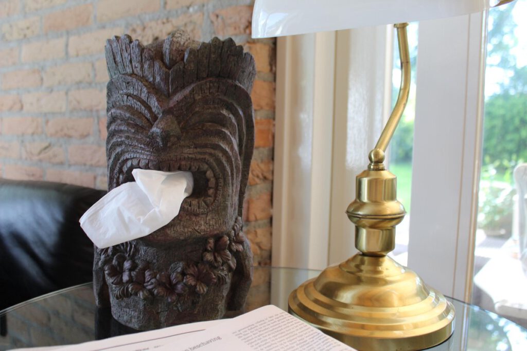 Dit is alles behalve een standaard issuehouder. Een ideale aanwinst op je bureau waar vele collega’s opmerkingen over zullen maken. Dit Tiki beeld spuugt zakdoekjes uit, super handig en geestig.